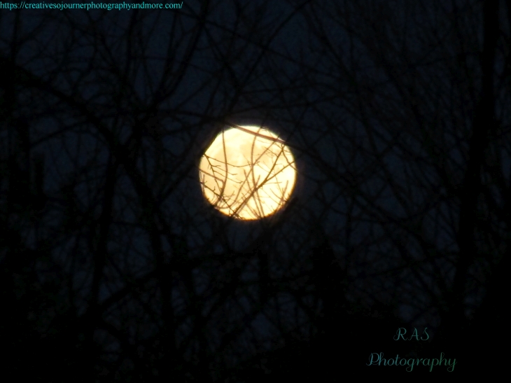 The full moon is always fun to capture in a photo, and this month’s moon is no exception! I love how it looks through the trees…