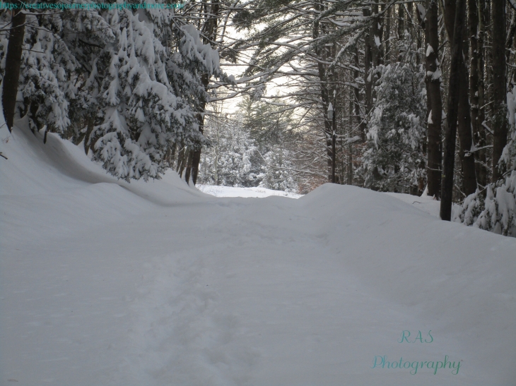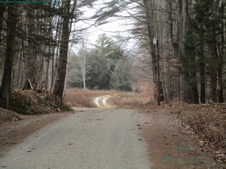 Here is a photo of a dirt road leading to a field the day before we got a Nor’Easter: