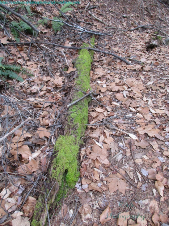 I love seeing the bright green moss covering rocks and logs in the woods! Like this nicely covered fallen tree: