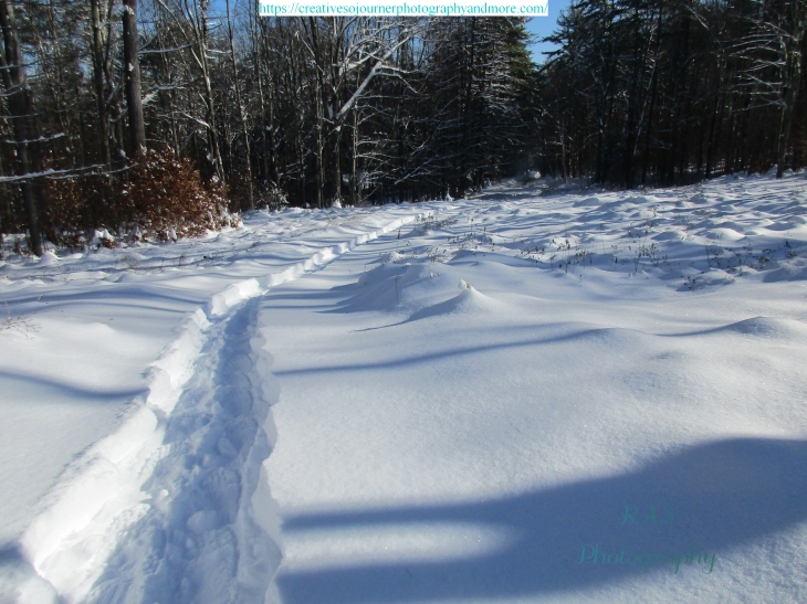 One of my favorite outdoor winter activities is snowshoeing. Here’s one of our trails right after getting 2.5 feet of snow before Christmas: