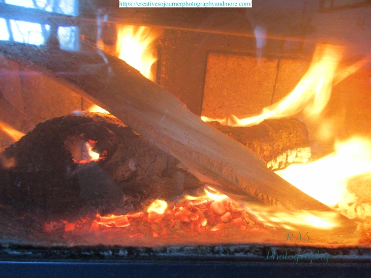 We have a woodstove, and sometimes I see different things in the flames and wood, such as this croc/alligator/caiman (dragon?) head (log) breathing fire! Do you see it too?