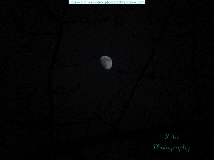 I was out shoveling snow last night and happened to look up and see the moon peeking out of the clouds: