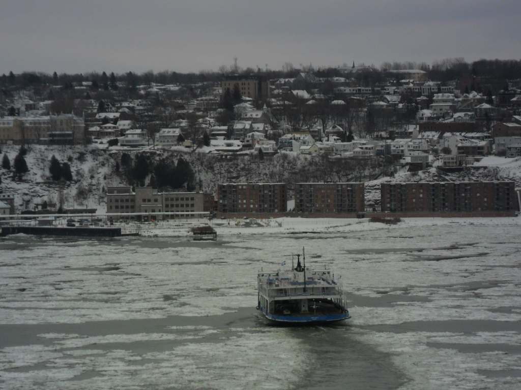 In January 2016, I and a friend headed up to Quebec City for their annual Winter Carnival. Since it was winter time, the St. Lawrence river had tons of ice in it, although the ferries still traveled across: