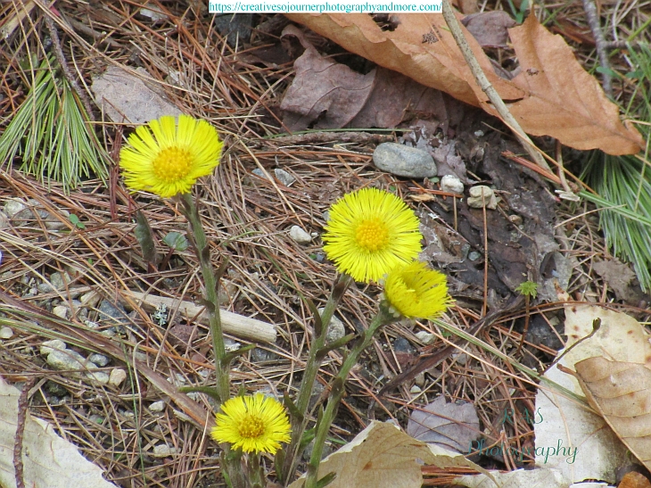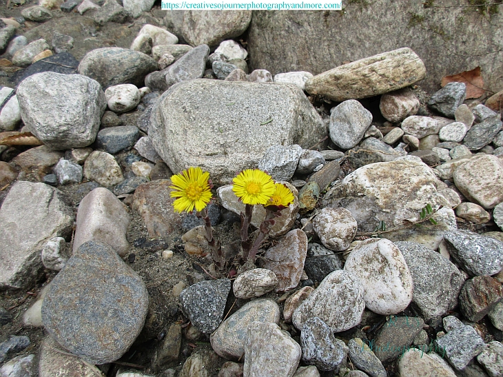 The little yellow flowers called Colt’s Feet are blooming, and can even be found growing amongst the rocks: