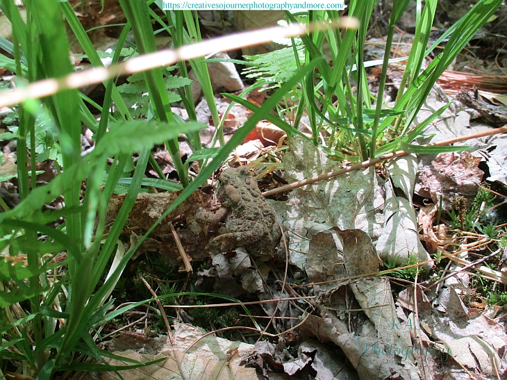 On a recent walk, I happened upon this little toad blending into the scenery: