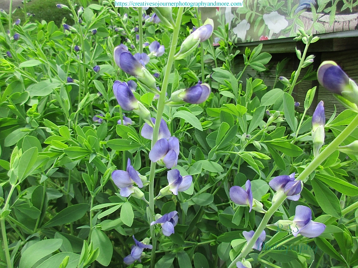 Our pretty purple Baptisia is now blooming around our mailbox: