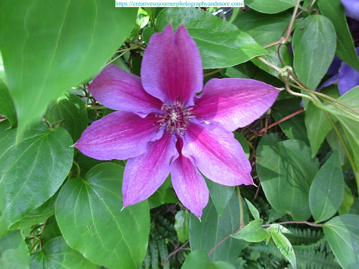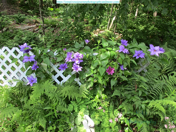 Our clematis are now blooming! We have 2 different colors, purple and pink: