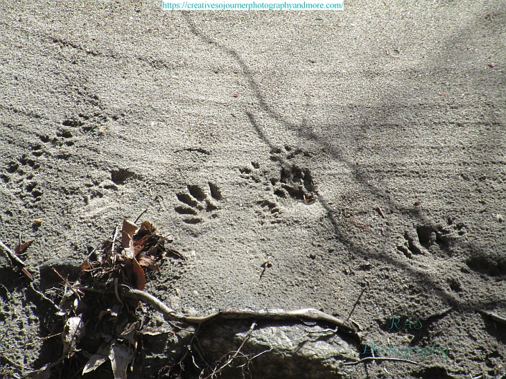 On a recent walk, I saw these animal tracks in the mud, which look like they may be from a racoon?