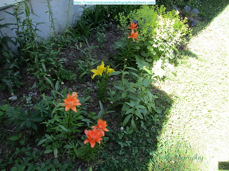 Right before the Tiger Lilies bloomed, we had these other orange and yellow lilies: