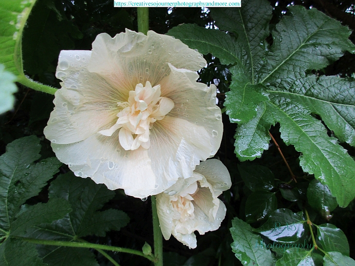 Last year some bird must have planted a hollyhock for us in one of our gardens…this year we have 2 more, each a different color!