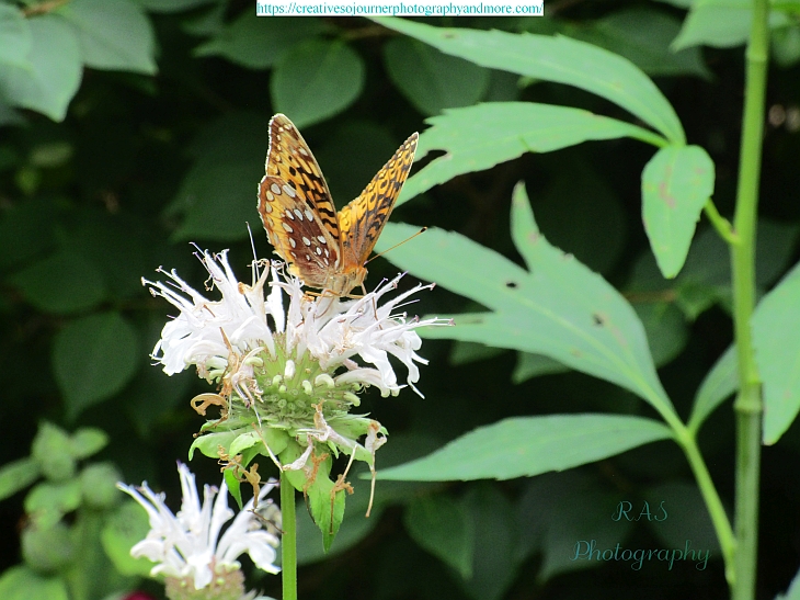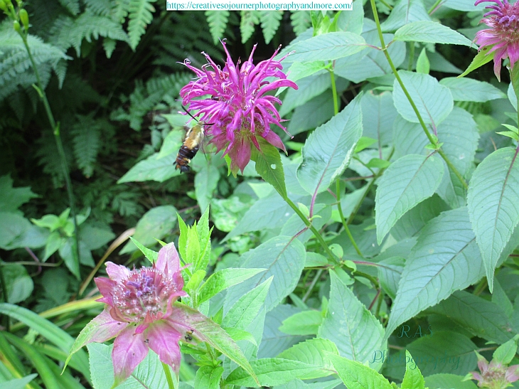 Our beebalm is now blooming, attracting all sorts of flying creatures: