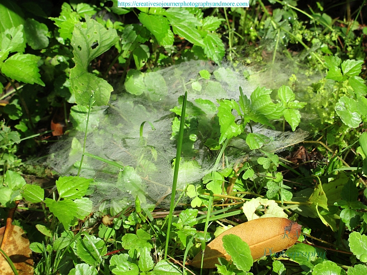 Some mornings there are tons of spider webs shining in the sun all over the lawn: