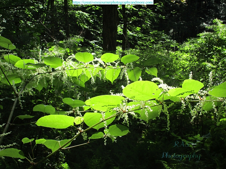 The invasive knotweed still looks pretty while flowering, especially when the sun shines on them!