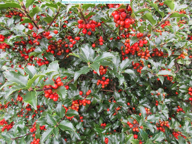 The holly bushes are covered in berries now, bringing forth thoughts of the upcoming Christmas season!