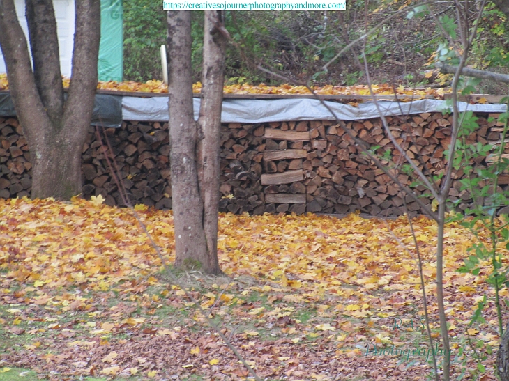 Our neighbor’s wood pile looks pretty surrounded by all the fallen yellow leaves: