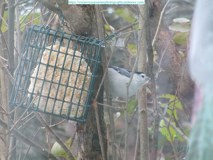 Lots of birds enjoy suet as well as seeds, including this nuthatch: