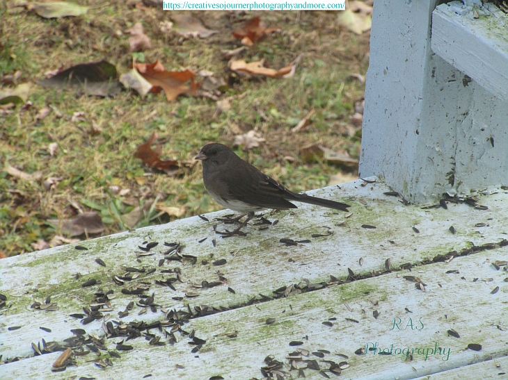So many different kinds of birds visit our feeders and lawn, including juncos: