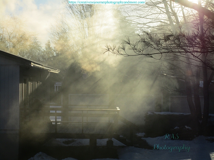 The sunbeams look pretty shining through the wood smoke from our neighbor’s fire: