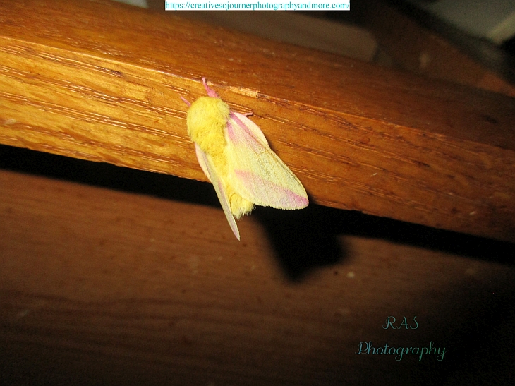 Two Rosy Maple Moths snuck inside our kitchen a couple nights ago: