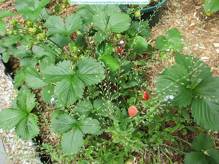 Our strawberries are now starting to ripen! The chipmunks love them…