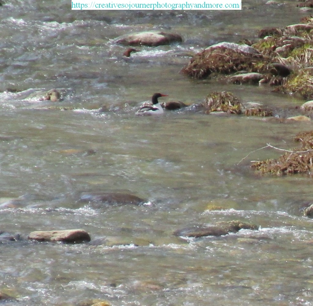 A few weeks ago on a walk around town, I happened upon this Common Merganser duck floating in the brook: