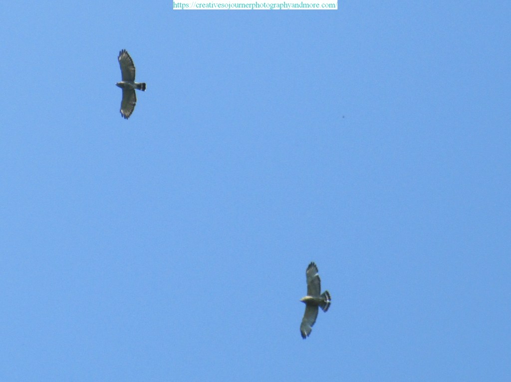 Earlier this year when I was sitting in our back yard I happened to look up and see 2 hawks flying over: