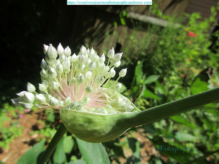 We planted a leek maybe 3 years ago and it still comes up every year! It is quite tall now and the seed pod containing the flowers has now opened, and the butterflies love it: