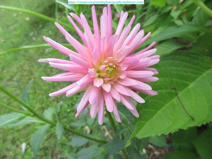 Our pink Dahlia is finally blooming in our front garden: