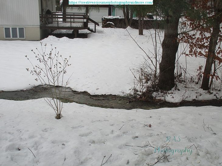 We’ve gotten some winter rains on top of the snow recently, making our moat/ditch full of water: