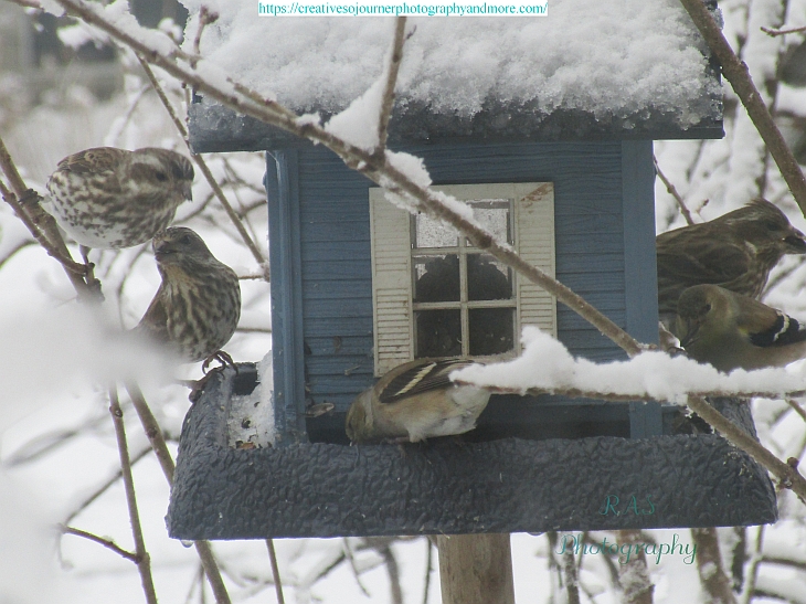 All sorts of birds enjoy coming to our feeder:
