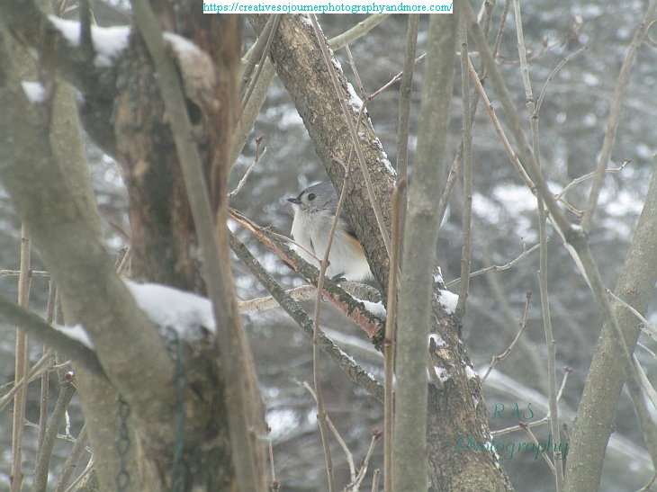One of the birds that likes to come to our feeders is the Tufted Titmouse: