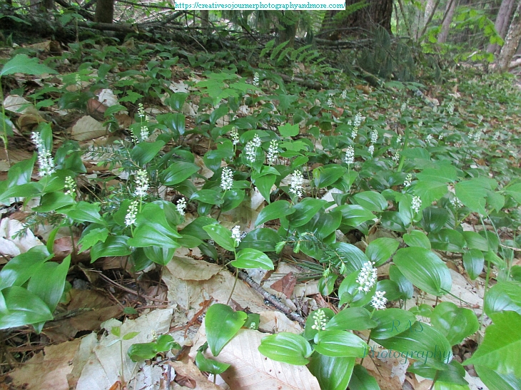 Our neighboring woods is now covered with the sweet-smelling wild lily-of-the-valley flowers: