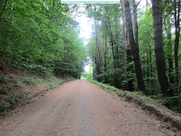 We have a nice dirt road behind our house and I like to take photos of it in every season. Here is what it looks like now in early summer: