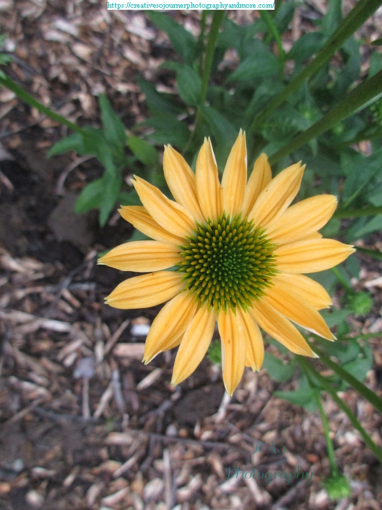 We now have a pretty blooming yellow Echinacea, or coneflower, in our backyard: