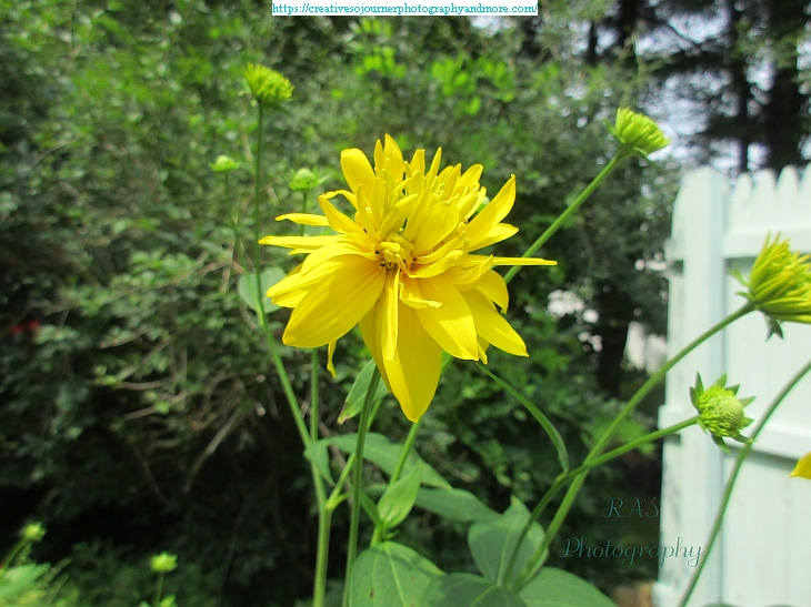 Our pretty yellow Golden Globes are now blooming in our backyard garden: