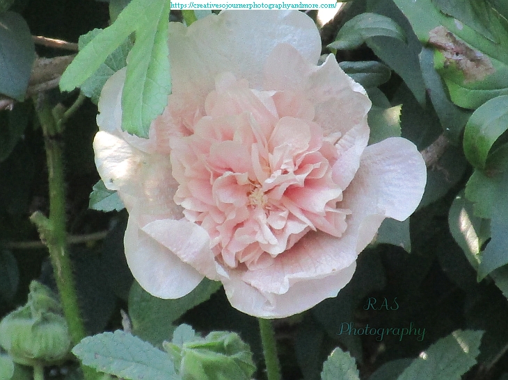 This is the 3rd bloom of our hollyhock this year! The first 2 were pale yellow, but this time it is a pale pink: