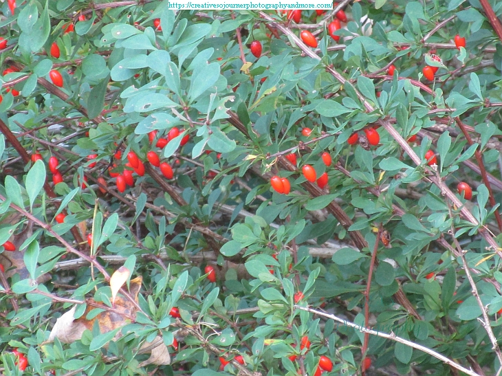 Barberries Posted bycreativesojourner21October 11, 2023Posted innatureTags:barberries, falltime The pretty red barberries are now ripe: Get Your Dose of Nature Delivered to Your Inbox by Signing up Below: Type your email… Subscribe Share this: Click to share on X (Opens in new window) X Click to share on Facebook (Opens in new window) Facebook Click to share on Pinterest (Opens in new window) Pinterest Like Loading... Related