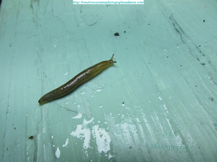 Many creatures come out more during and after the rain, like this slug: