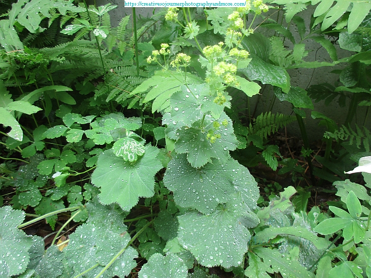 The Lady’s Mantle looks pretty when it collects raindrops on its leaves: