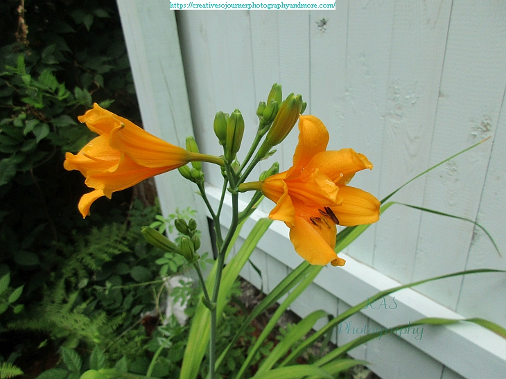 Our pretty light orange lilies are now blooming in our backyard garden: