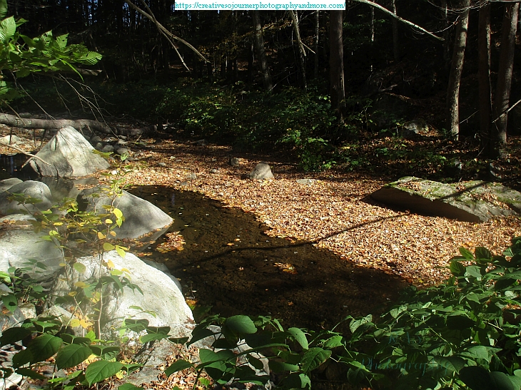 The brook looks pretty all covered with leaves: