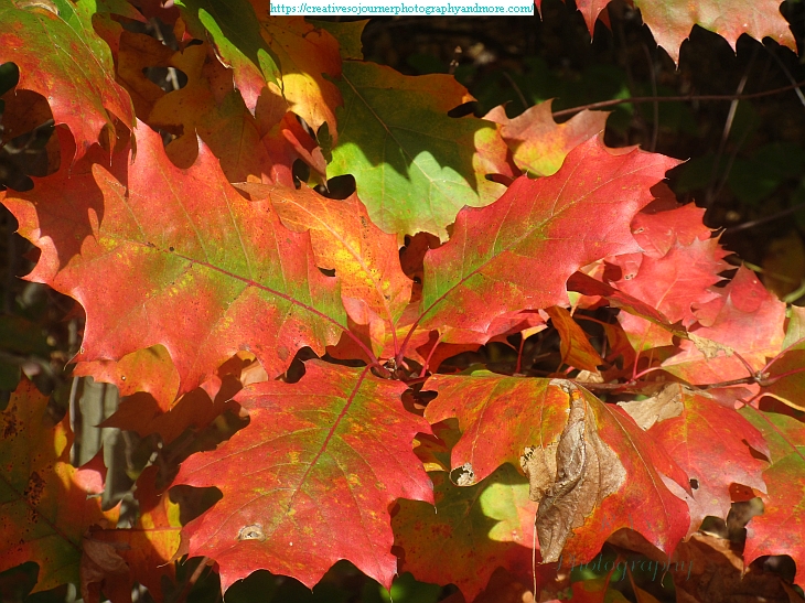 The oak leaves are some of the last leaves to change color: