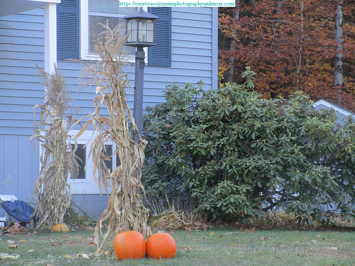 One of our neighbors has some pretty Fall decorations out on their front lawn: