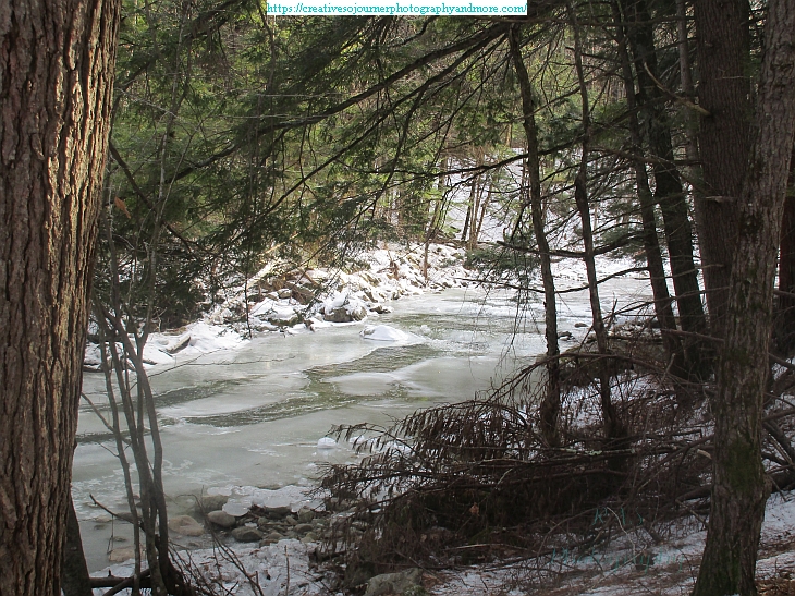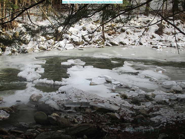 The brook is looking pretty covered in ice, with some streams flowing over: