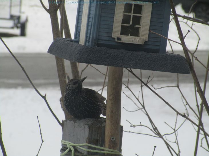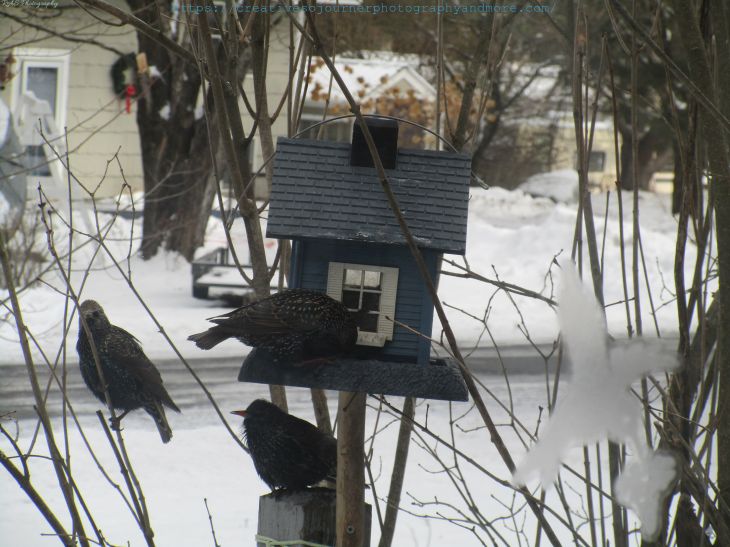 We get many different kinds of birds at our birdfeeders this time of year, some are every day visitors, and some fly threw a few times, such as these European Starlings: