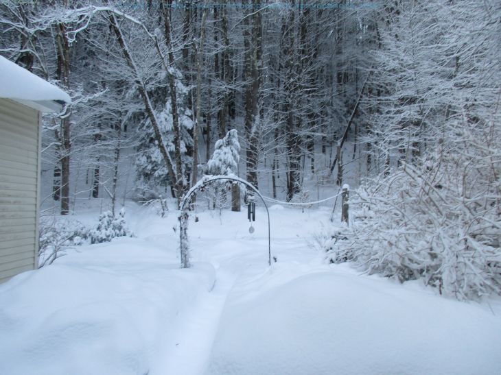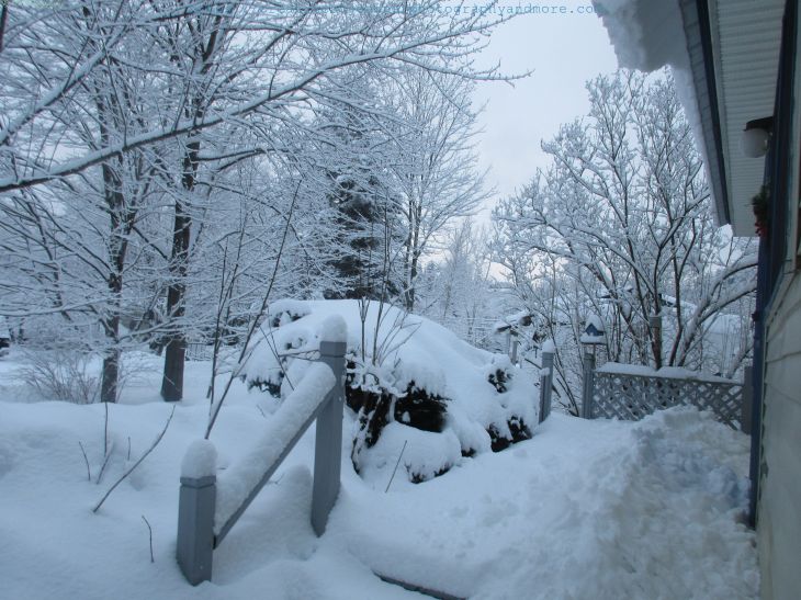 We got another 5.5 inches of snow last night! Everything looks pretty covered in white: