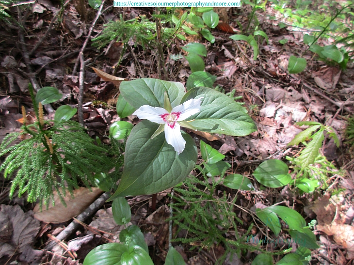Not only are there the dark red trillium but also these lighter Painted Trillium now blooming all over the woods: