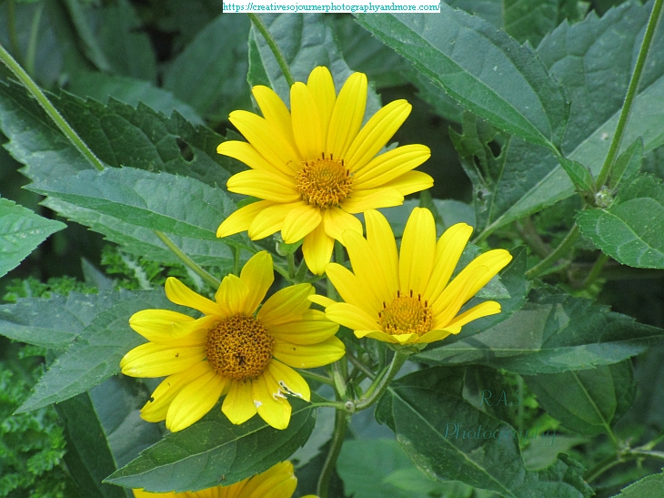 Our backyard garden has several different kinds of flowers in it, including these pink Blushing Turtle Cranesbill geraniums, and yellow cinquefoil bush: