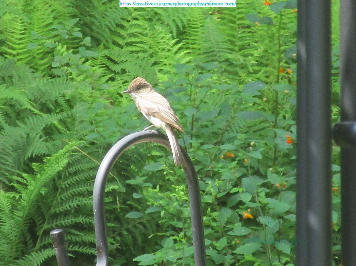 I saw this Flycatcher sitting on top of our plant holder in our backyard the other day: